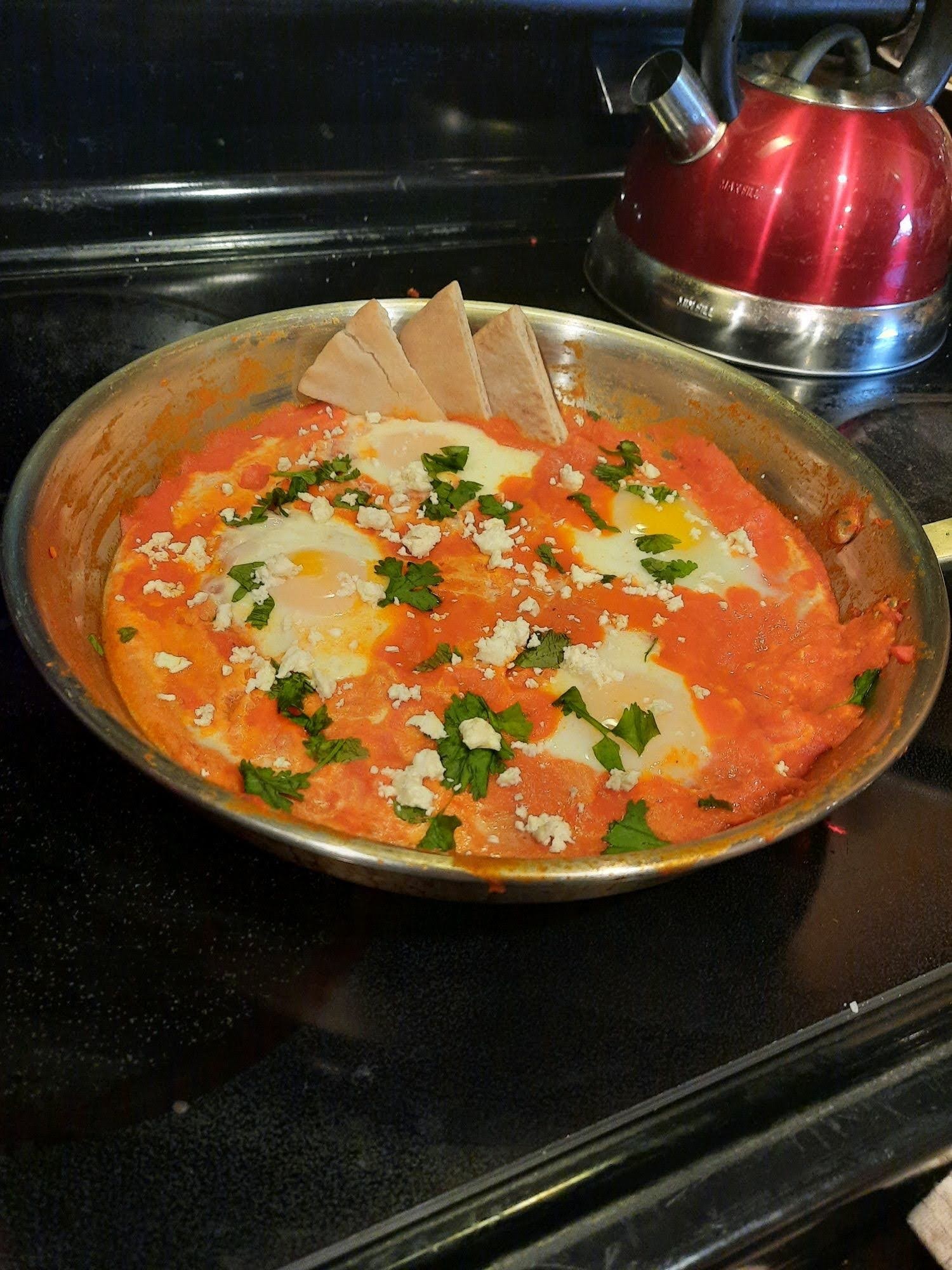 Sometimes that means we get a delicious North African delight like Shakshuka. Our daughter nailed it all the way down — attention to detail in the recipe, taste, presentation.