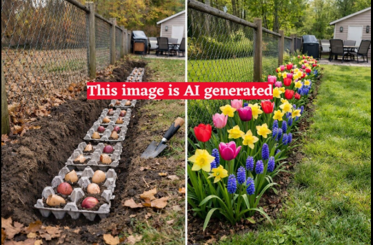 That last one, makes me feel a bit like Captain Ahab, a little obsessed with how I can find that white whale of a resource that will help me grow carrots. By looking on the internet though, I have been increasingly disturbed by the number of videos and images that are clearly AI generated targeted at beginner gardeners. Some of the videos/images are about shortcuts to planting onions, or tulips, or garlic. For instance, one of the most popular ones is about how you can plant a bunch of bulbs by digging a trench, putting the bulbs in egg cartons, and then covering them with dirt. Look at the one below: