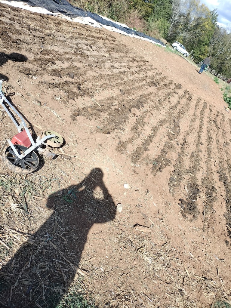 He came out to the farm as promised and skeptical though he was, worked with us for 3 hours (barefoot!) with no breaks talking to us about soil health and the basics of working with minimal tools and dirt since we clearly didn’t have a plan. After we marked off our lines, we used the seeder to ensure a straight row of plants. We watered it heavily and Joel prayed over the land.