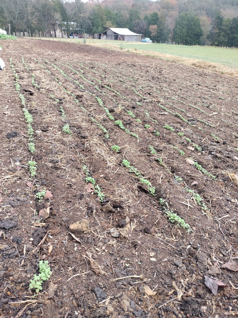Doing all this work in mid October (instead of August like the internet suggested we should have), we had no idea if the 2 month drought and coming cold snap would ruin our crop, but lo and behold we kept coming back to a new surprise of growth each week.