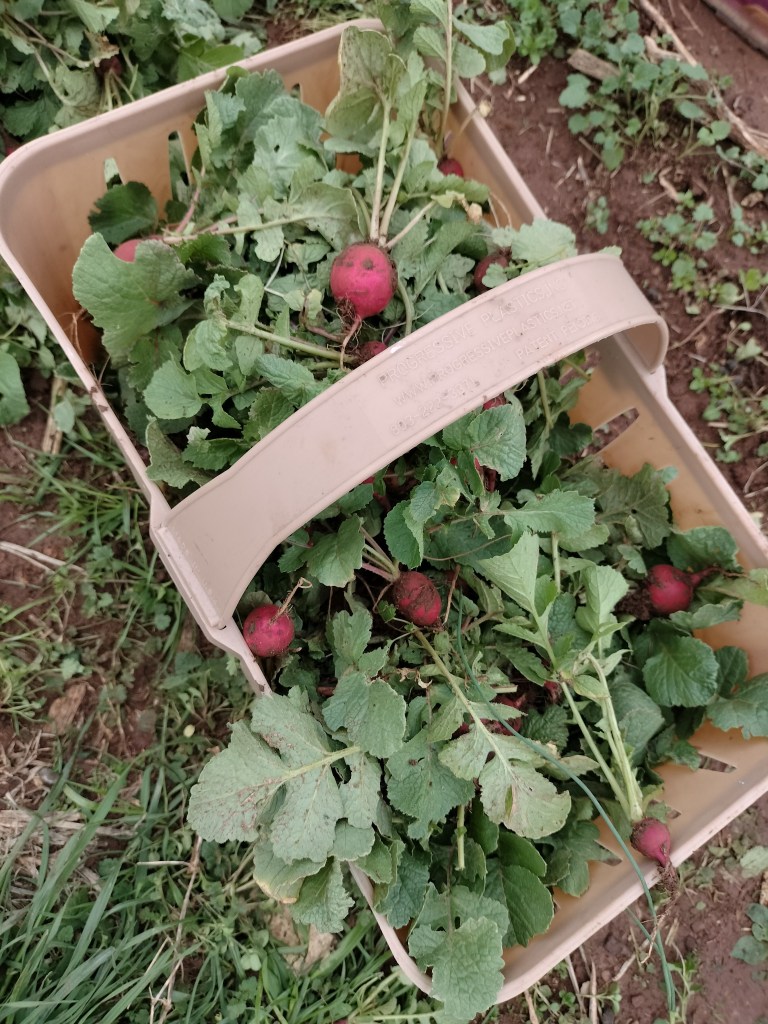 The time finally came when we had our last day at the farm for December. We decided to harvest some radishes, kale, and stray turnips greens that ended up in the other rows. It was more than a complete success. We have more food than we know what to do with, so this year we’re using it in our homes and giving it away to friends. Perhaps in the future we can still enjoy it for ourselves and friends while also selling it to give the proceeds to charitable organizations the girls research or fundraise for a special project.