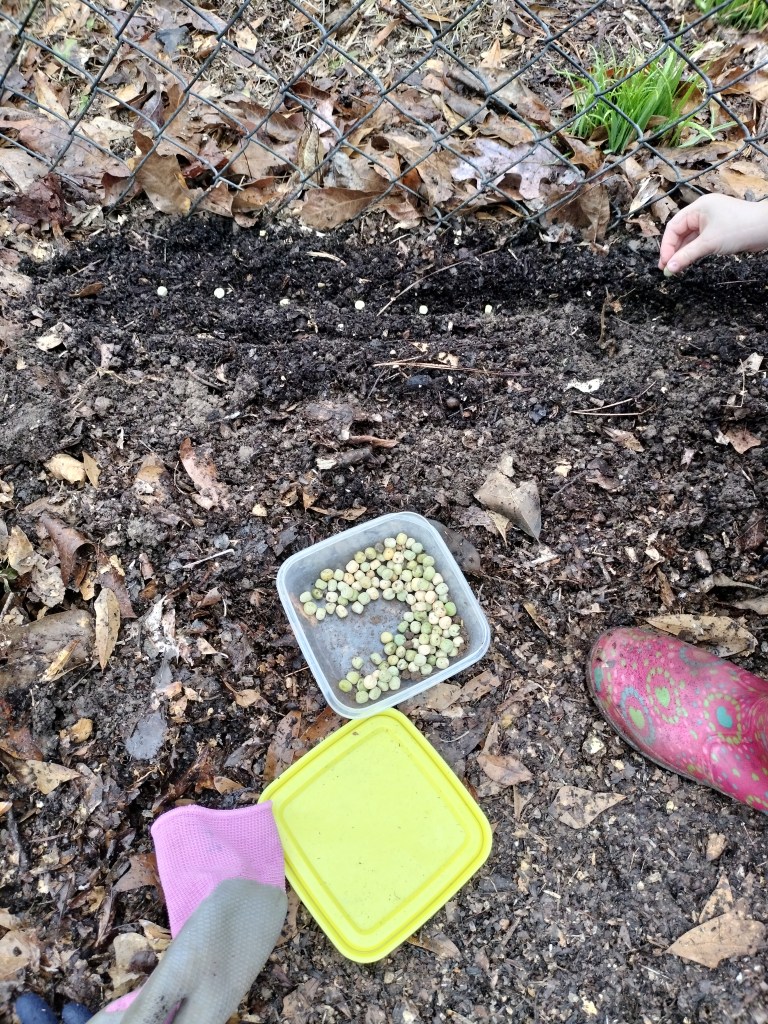 As I mentioned, I have never grown sugar snaps peas, so I did some research and am hoping for the best. Depending on what website or YouTube channel you look at you get SO many different ways to have a successful crop. One person swore by pre-planting indoors and transplanting to the garden. Another person said the exact opposite — sowing directly was better for the roots than transplanting. Some suggest pre-soaking the beans before you plant them (chose to do this) and adding an inoculant to the beans as a microbial additive to help nitrogen processing (chose not to do this).